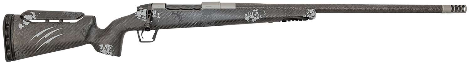 7mm PRC, Stainless steel 2 lug action, 70 degree bolt, carbon barrel, adjustable cheek piece and detachable mag box. Includes titanium muzzle brake.