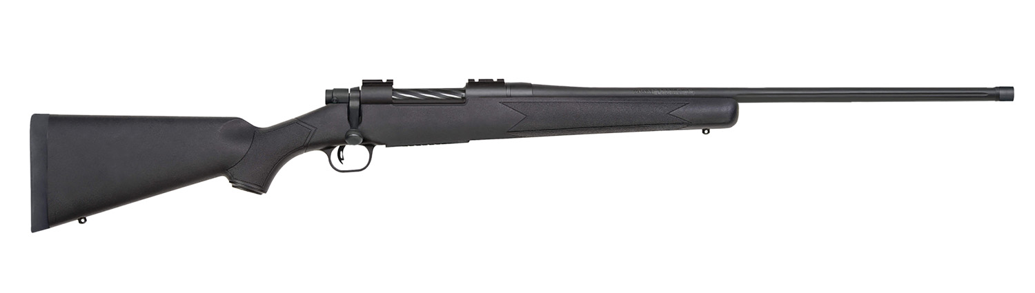 Mossberg 28234 Patriot Carbine 300 Win Mag 5+1 20″ Matte Blued Threaded Bull Barrel, Matte Blued Drilled & Tapped Receiver, Fixed Black Synthetic Stock