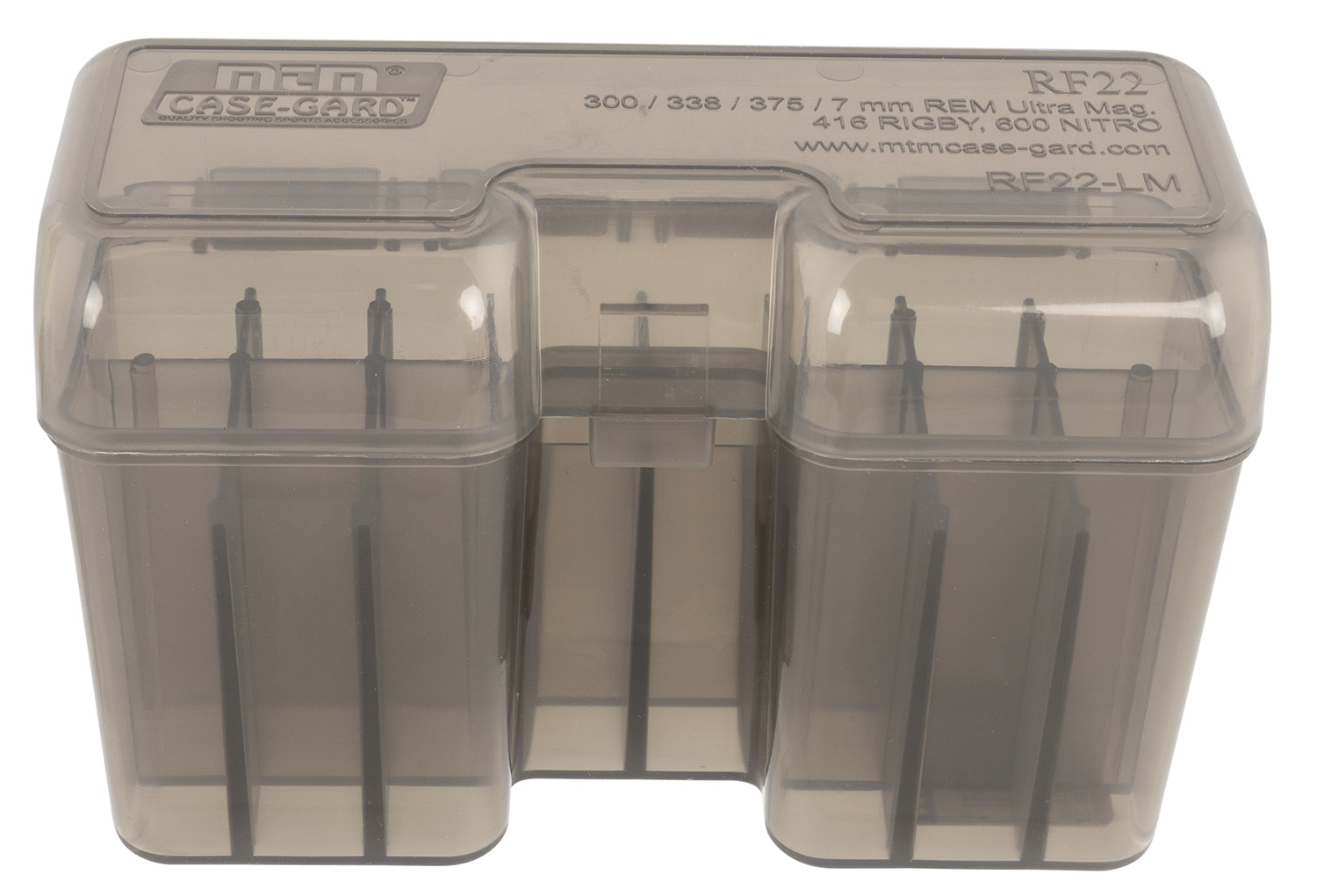 MTM Case-Gard RF22LM41 Ammo Box Flip-Top Multi Caliber Rifle Clear Smoke Polypropylene 22rd