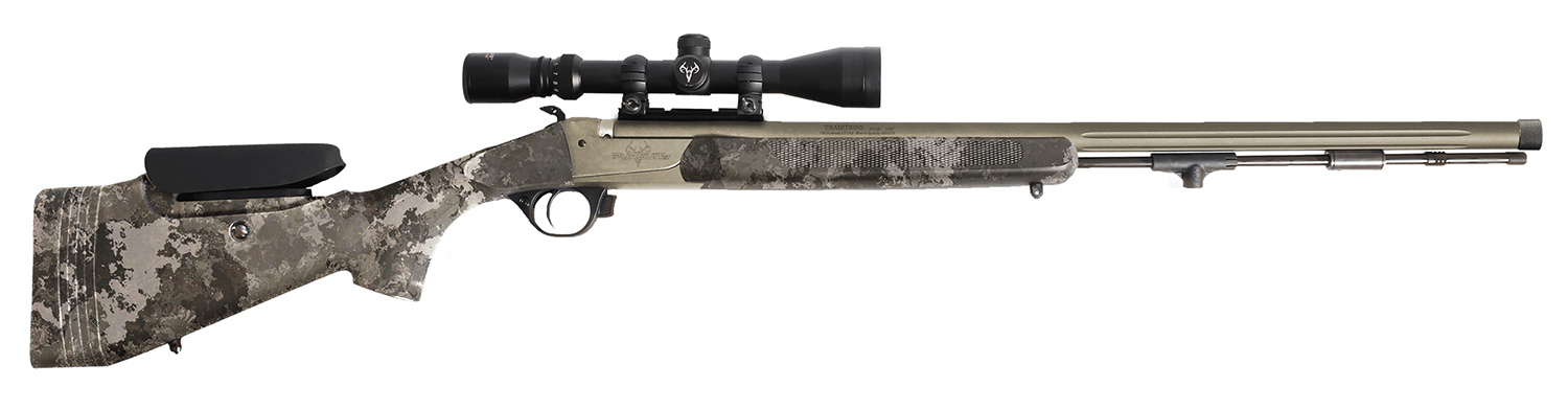 Traditions R53-746604534 Pursuit XT Pro w/Optics 50 Cal 26″ Tungsten Cerakote Fluted/Threaded w/VAPR Twist Barrel, Veil Alpine Synthetic Stock w/Adj Cheek Piece & LOP 3.5-10x44mm Duplex
